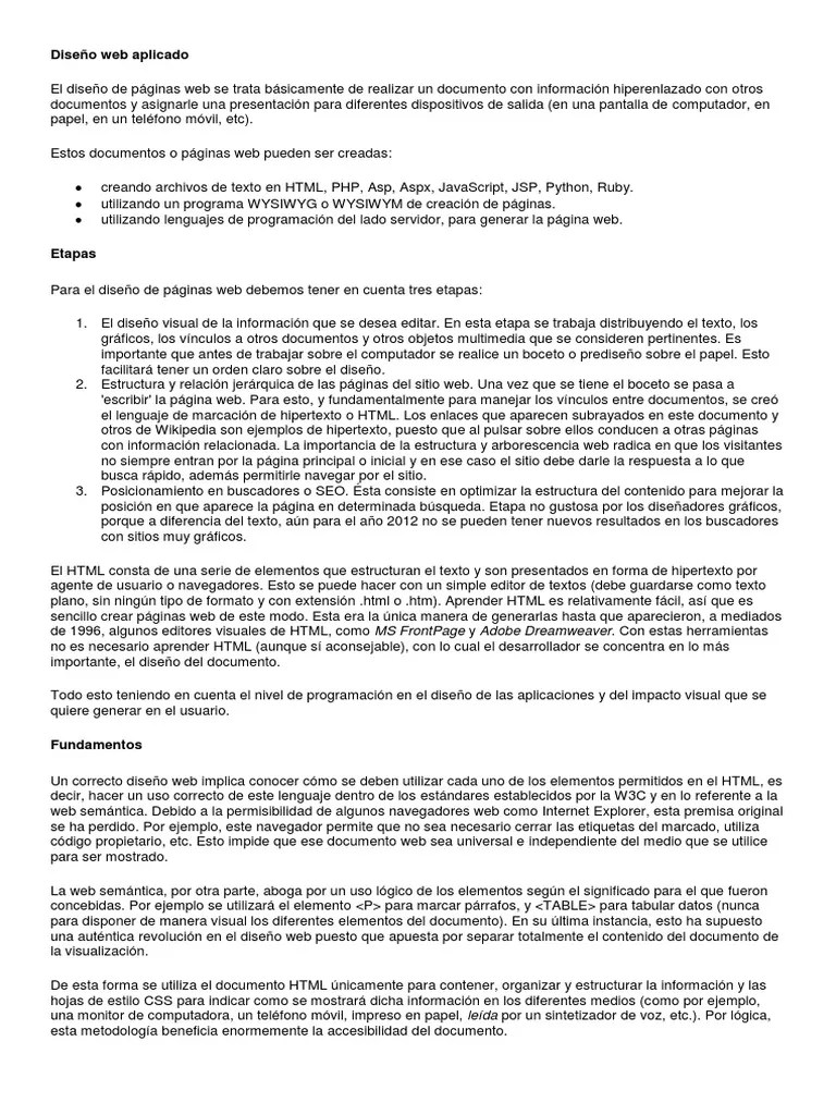 Html es uno de los lenguajes usados en el diseño web. El diseño web está en constante evolución. Se trata de un lenguaje de marcado que funciona a través de etiquetas de hipertexto... Se trata de un lenguaje de marcado que funciona a través de etiquetas de hipertexto.